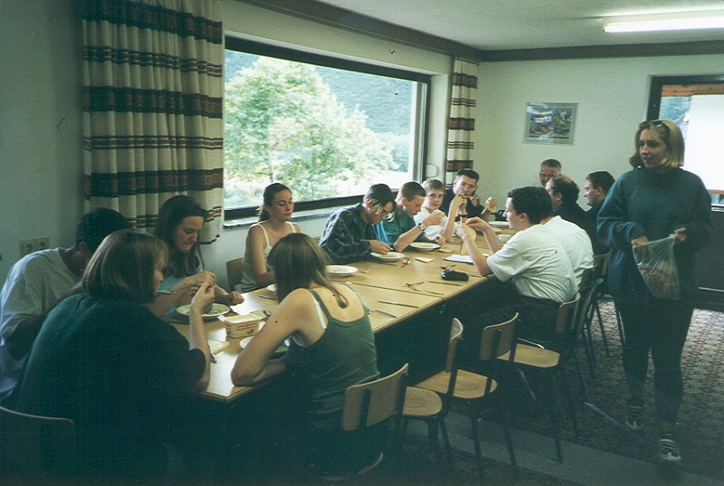 Here is the common room during meal time. The food could be described as mainly edible. We also had the pleasure of feeding the coach drivers, Andy and Martin, for the week.