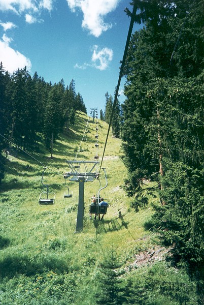 Sunday was a relaxing day with a late start and a trip up a chair lift. The weather was lovely as you can see. That's Rhian and Duncan in the nearest chair.